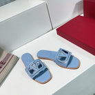 Vlogo Cut-Out Sky Blue Calfskin Slide Sandal