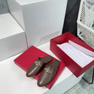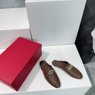VLogo Signature Brown Leather mules
