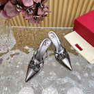 Vlogo Signature with Crystals Cut-Out Slingback Pump 70 Dark Silver Calfskin
