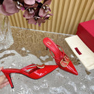Vlogo Signature with Crystals Cut-Out Slingback Pump 70 Red Calfskin