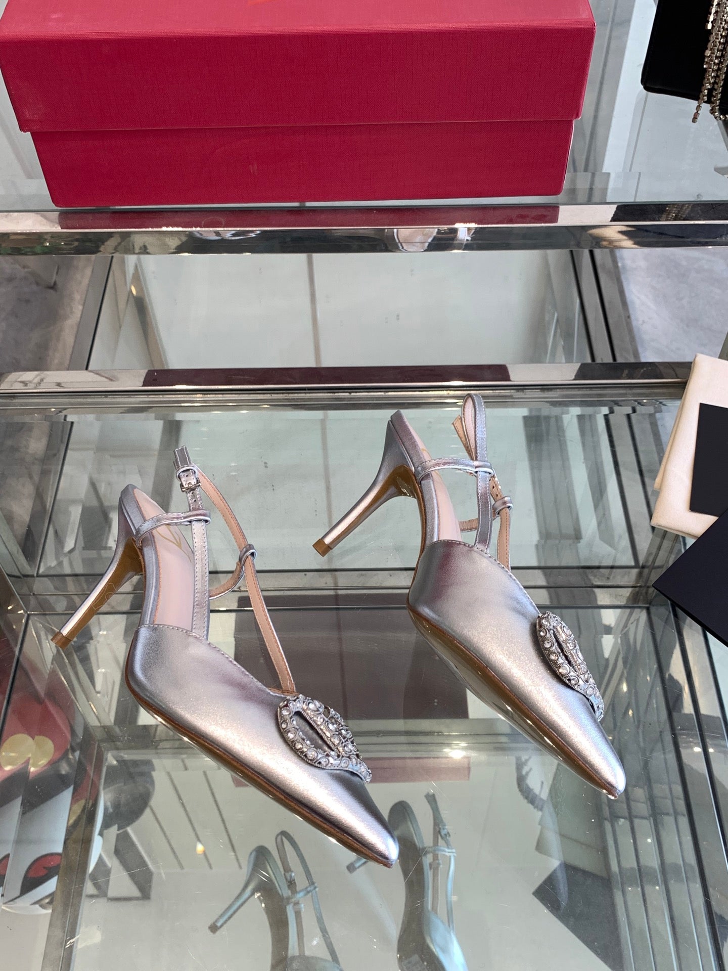 VT 25 High Heels Slingbacks Silver Cowhide 292337