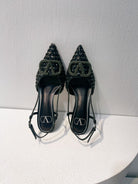 VT High Heeled Slingbacks Black Sheepskin 292799