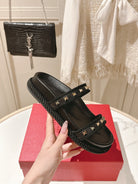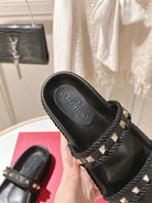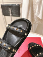VT Rockstud Sandals Black Espadrilles Cowhide 328131
