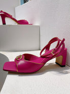 VT Sandals Heels 50mm Fuchsia Pink Cowhide 292772