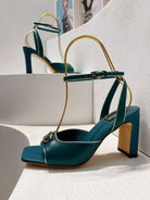 VT Sandals Heels 70mm Emerald Green Cowhide 292780