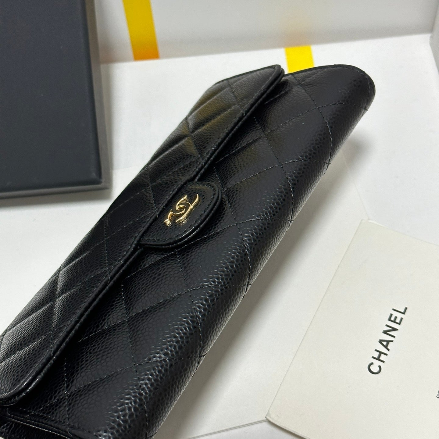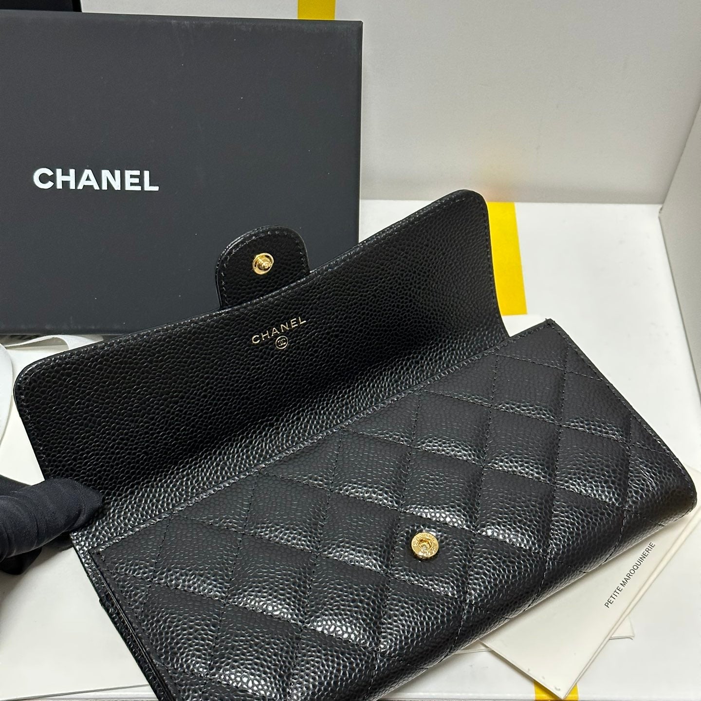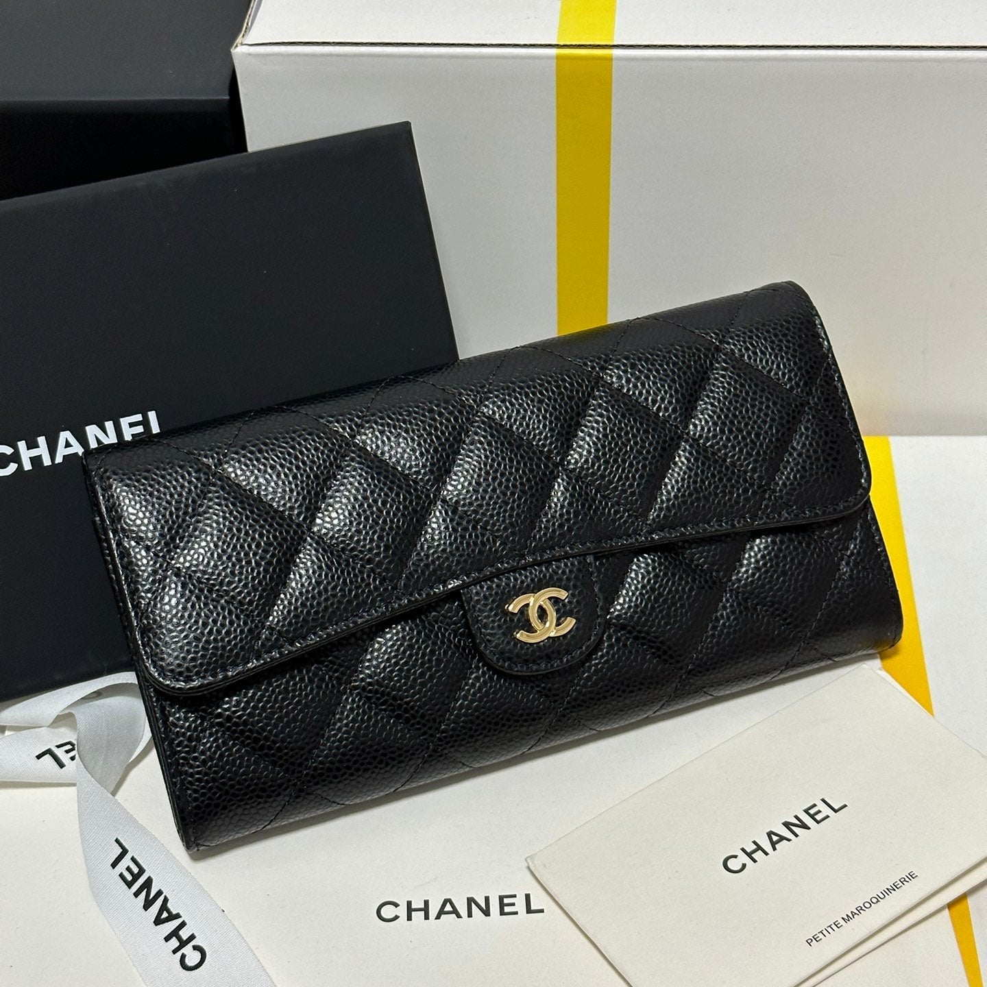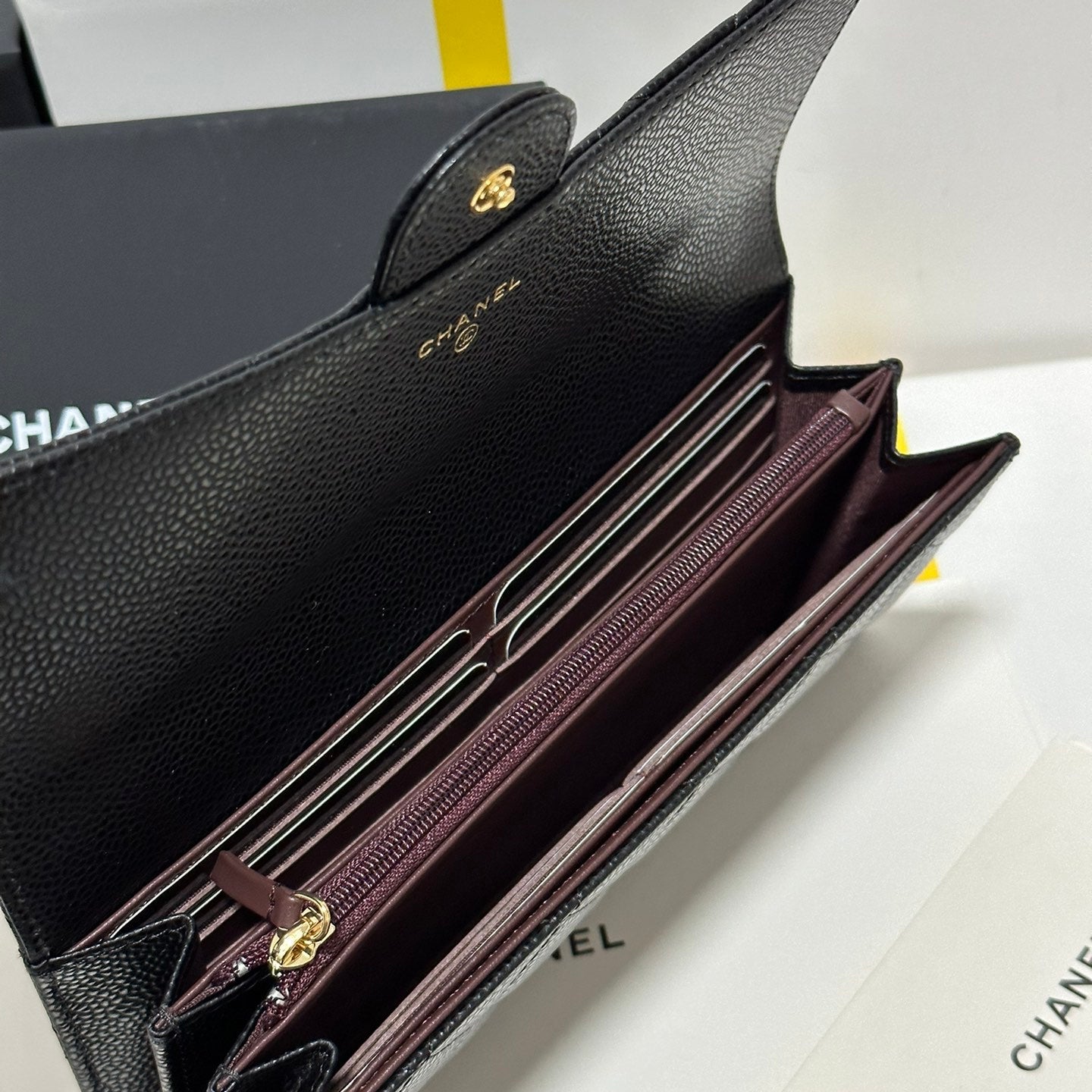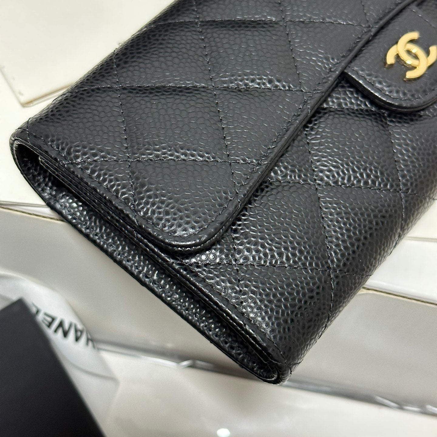 CC CLASSIC LONG PURSE CAVIAR 19 BLACK CALFSKIN EMBOSSED CAMELLIA