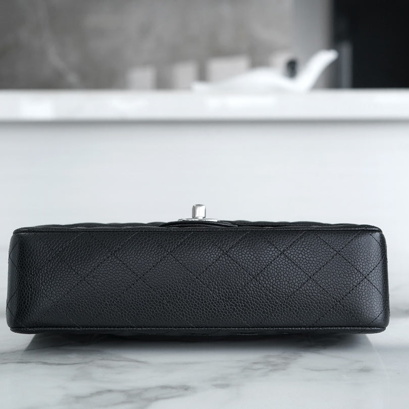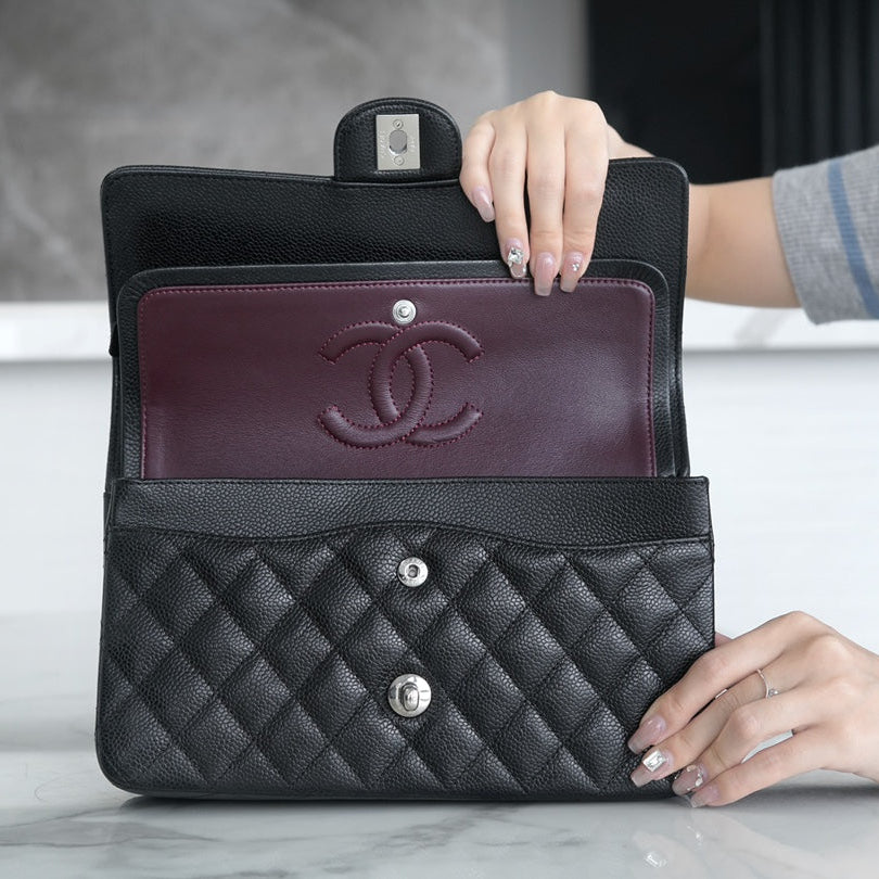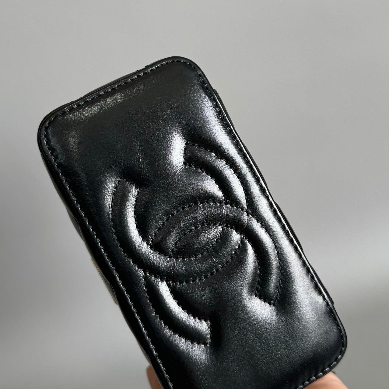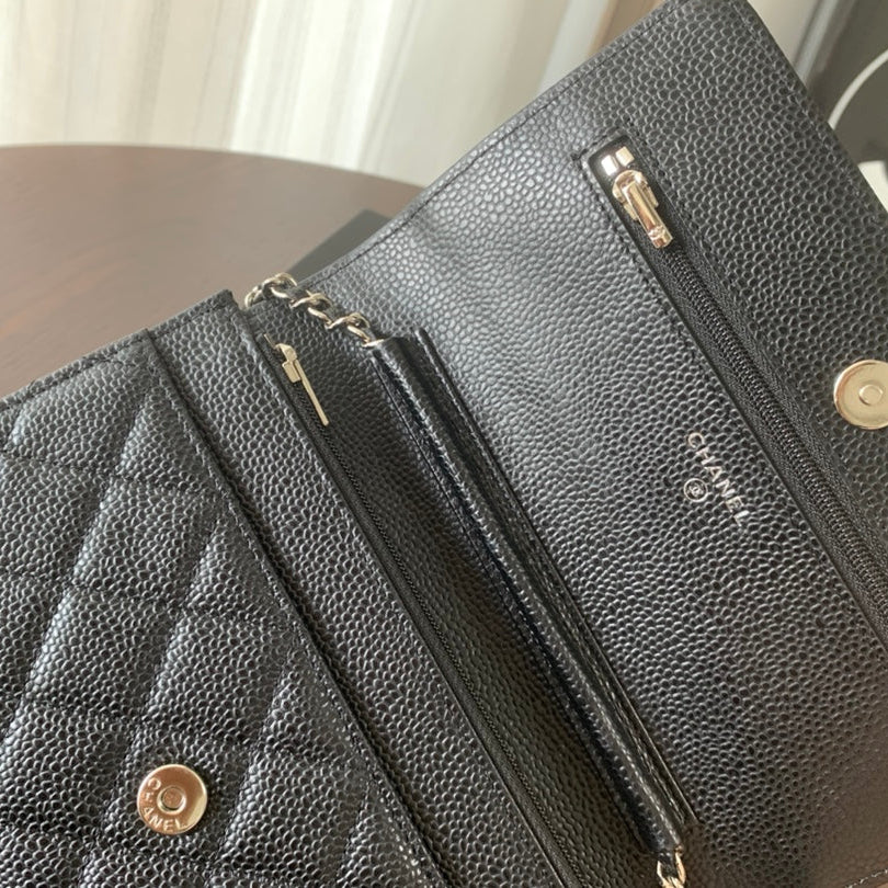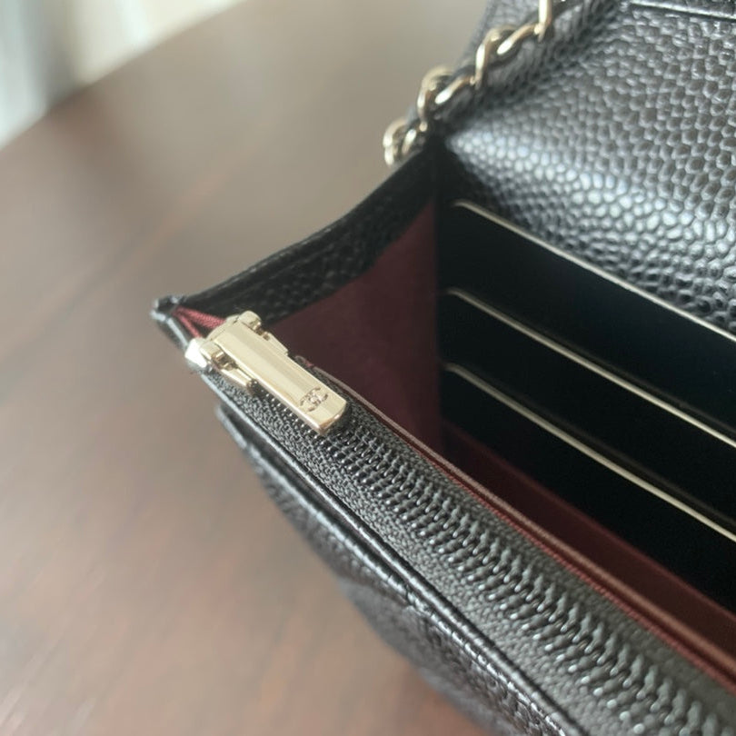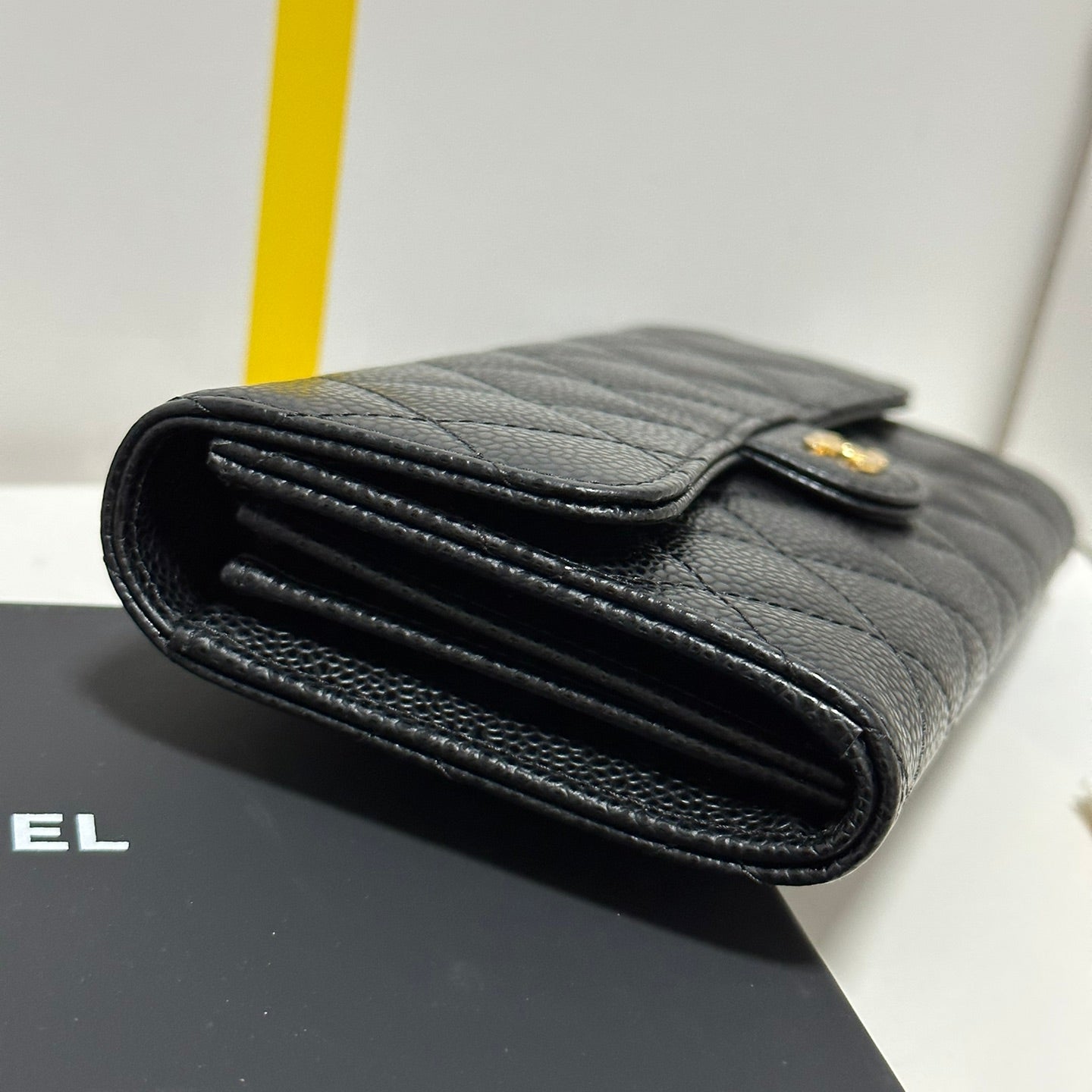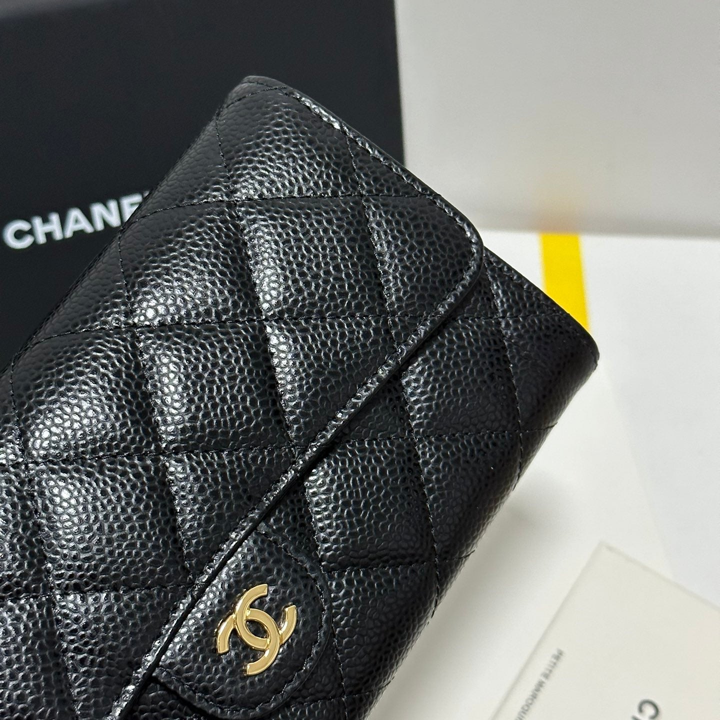 CC CLASSIC LONG PURSE CAVIAR 19 BLACK CALFSKIN EMBOSSED CAMELLIA