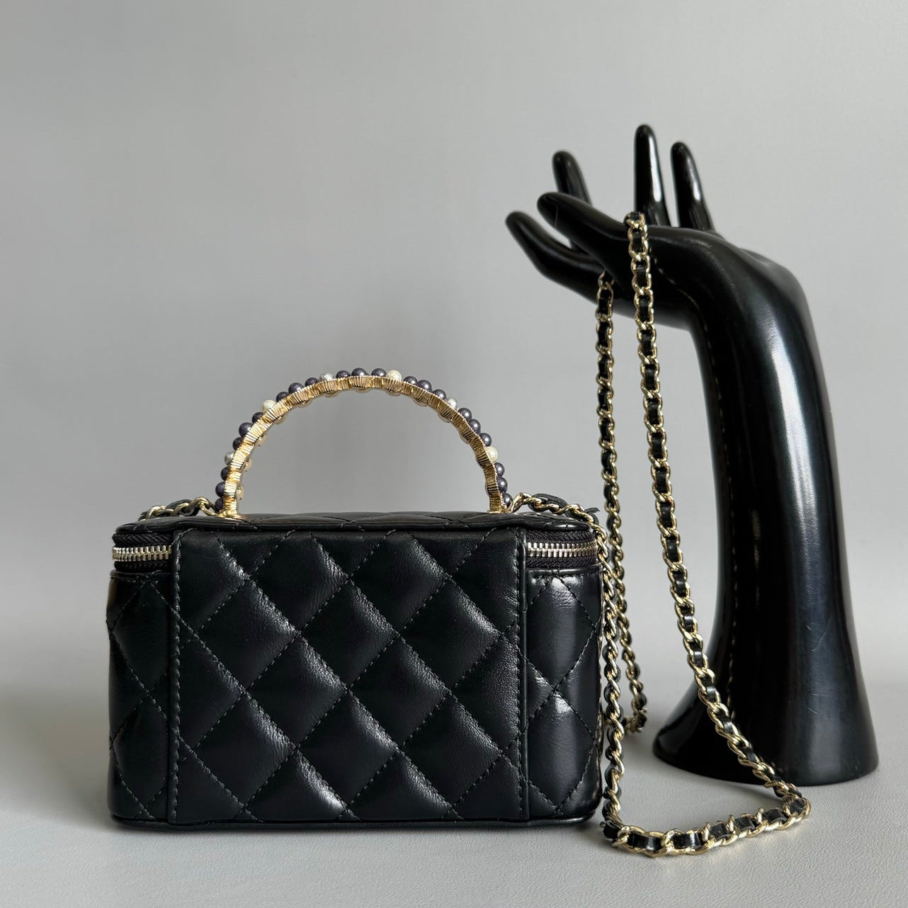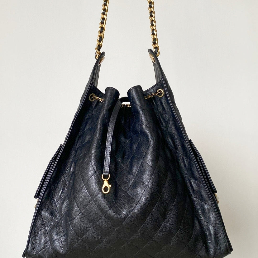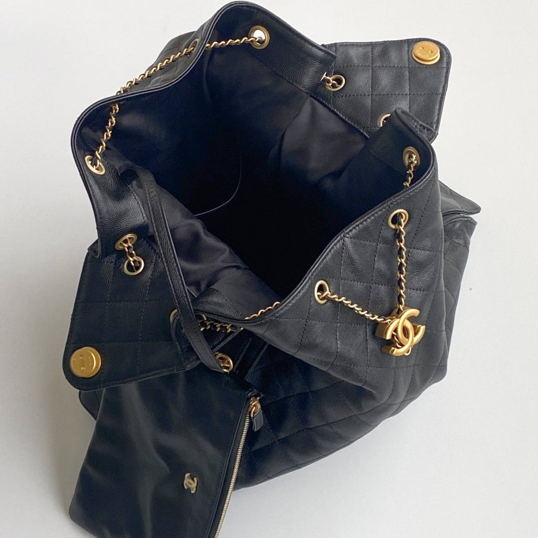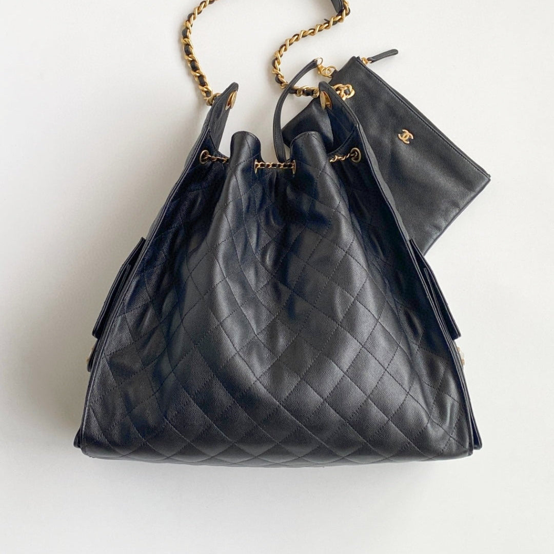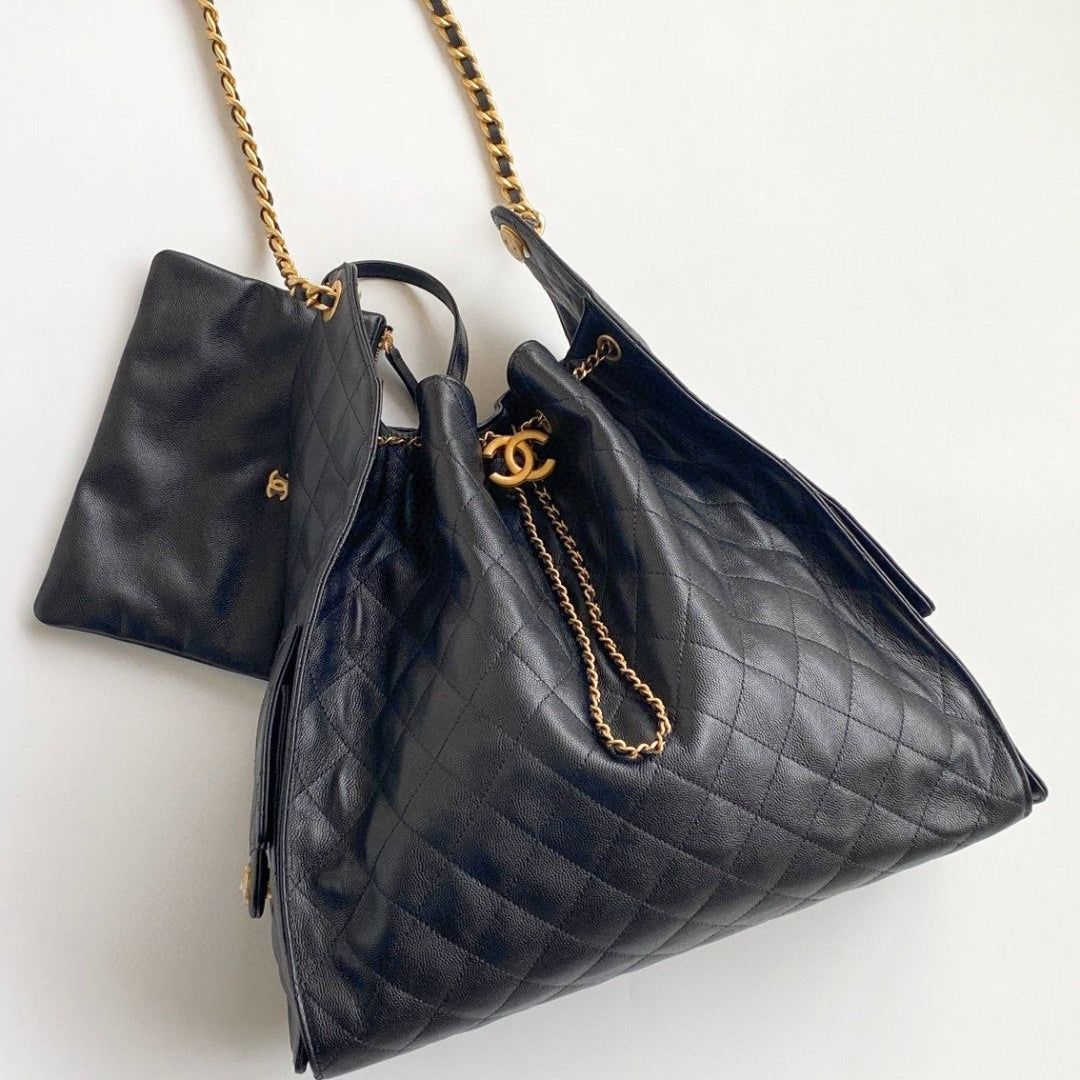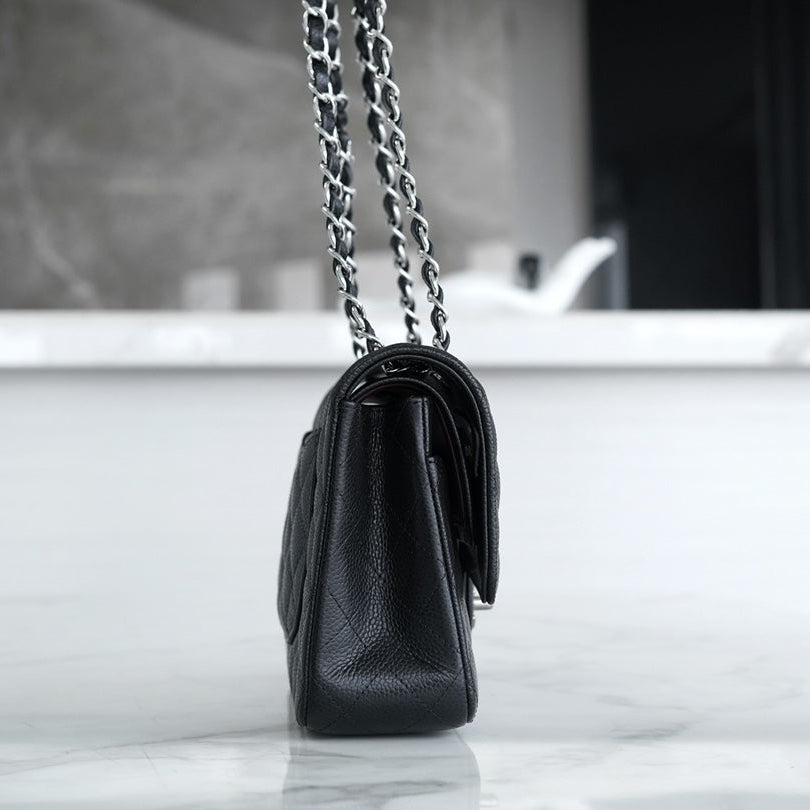 CC CLASSIC LONG PURSE CAVIAR 19 BLACK CALFSKIN EMBOSSED CAMELLIA