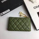 CC CLASSIC SMALL ZIPPED POUCH 15 DARK GREEN CALFSKIN GOLD ICON