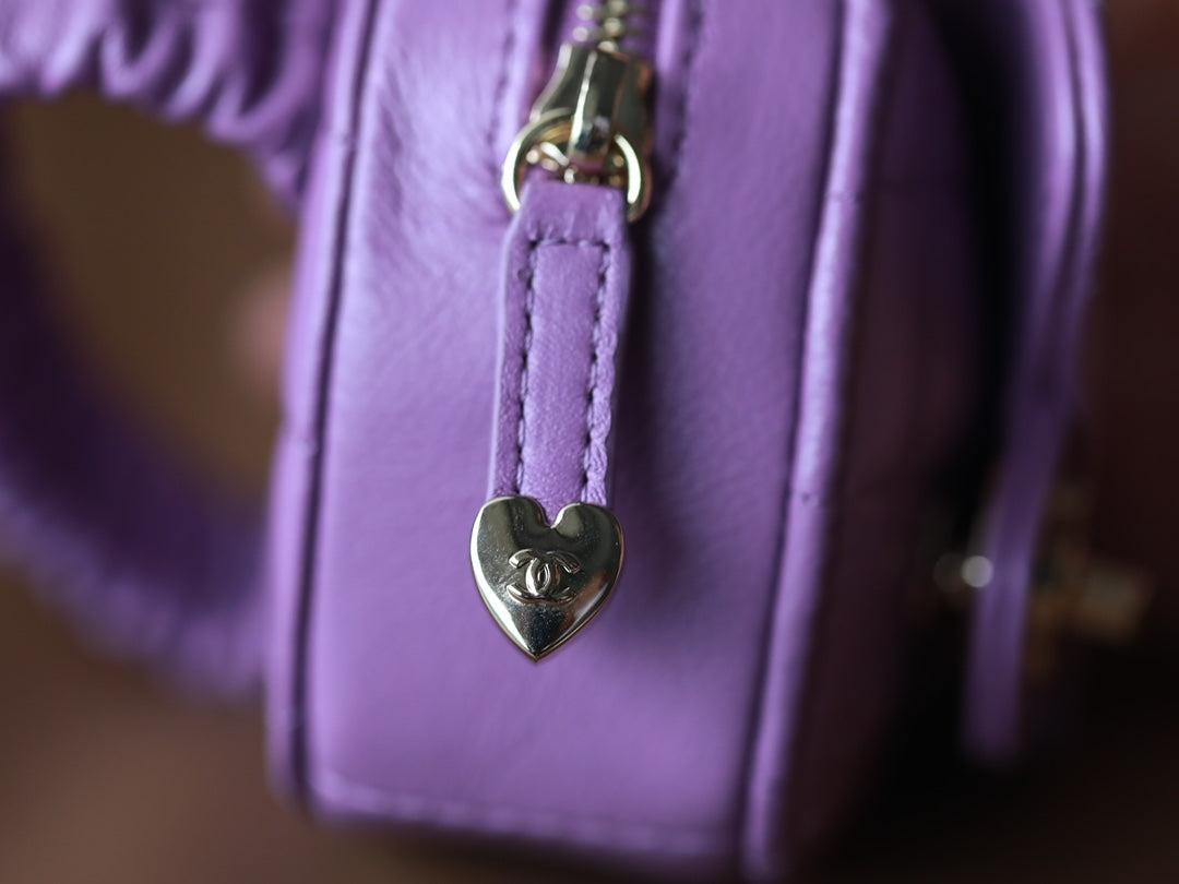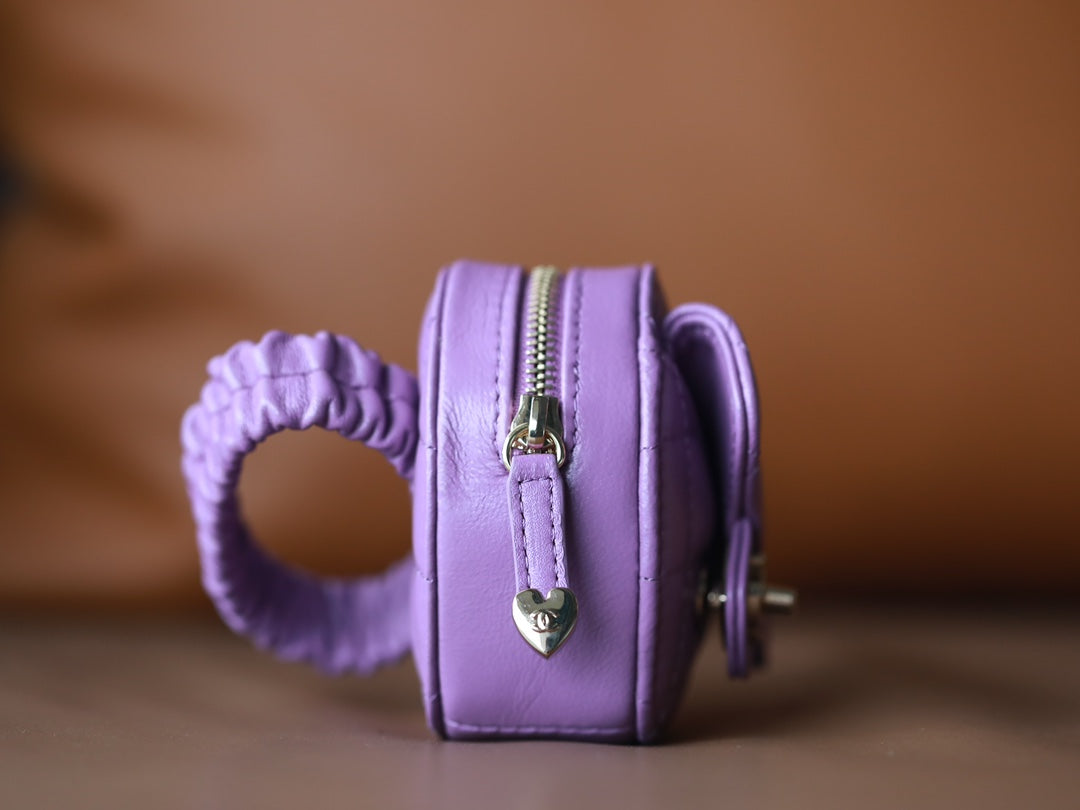 CC HEART COIN PURSE 8.5 PURPLE CALFSKIN