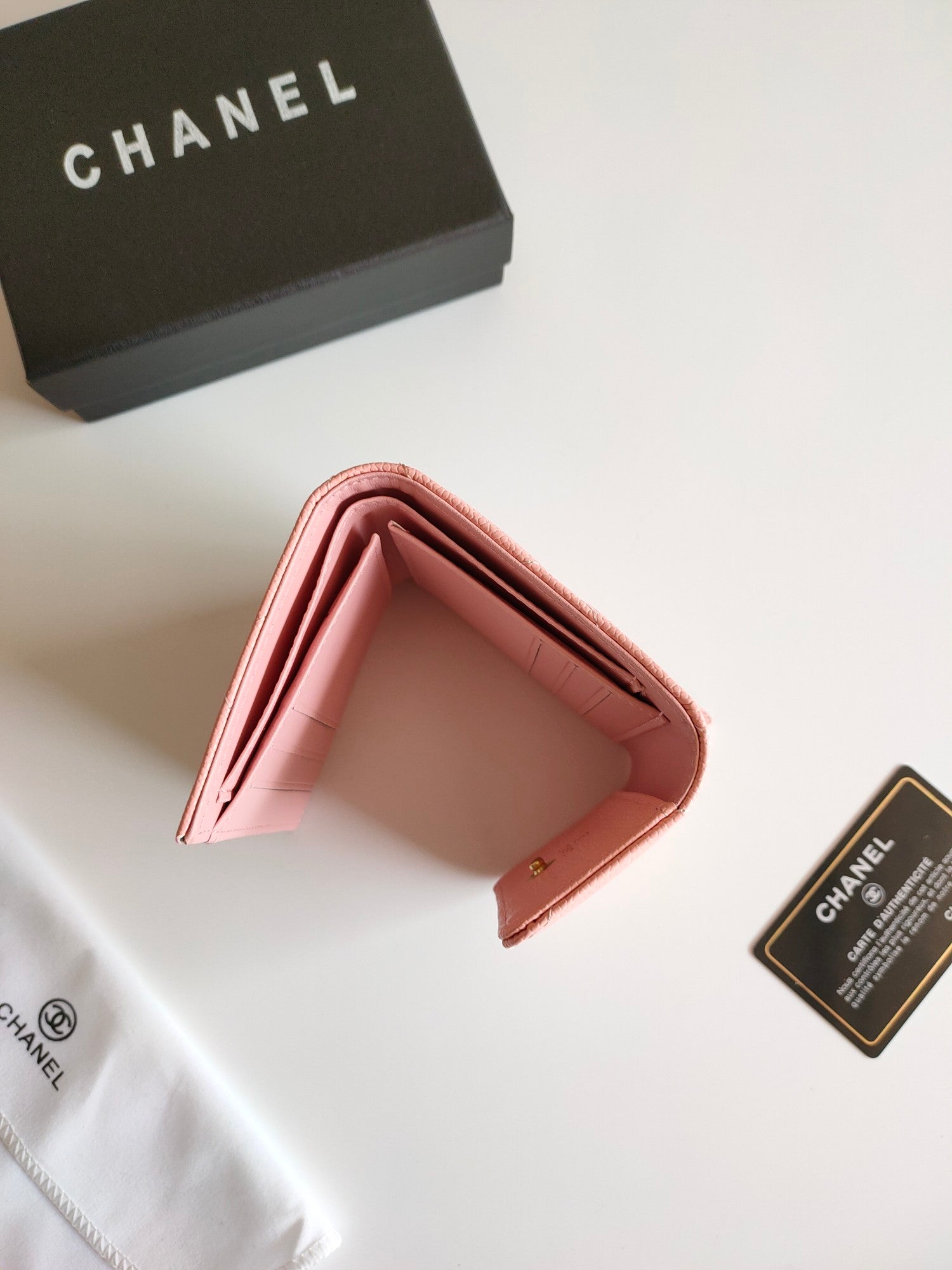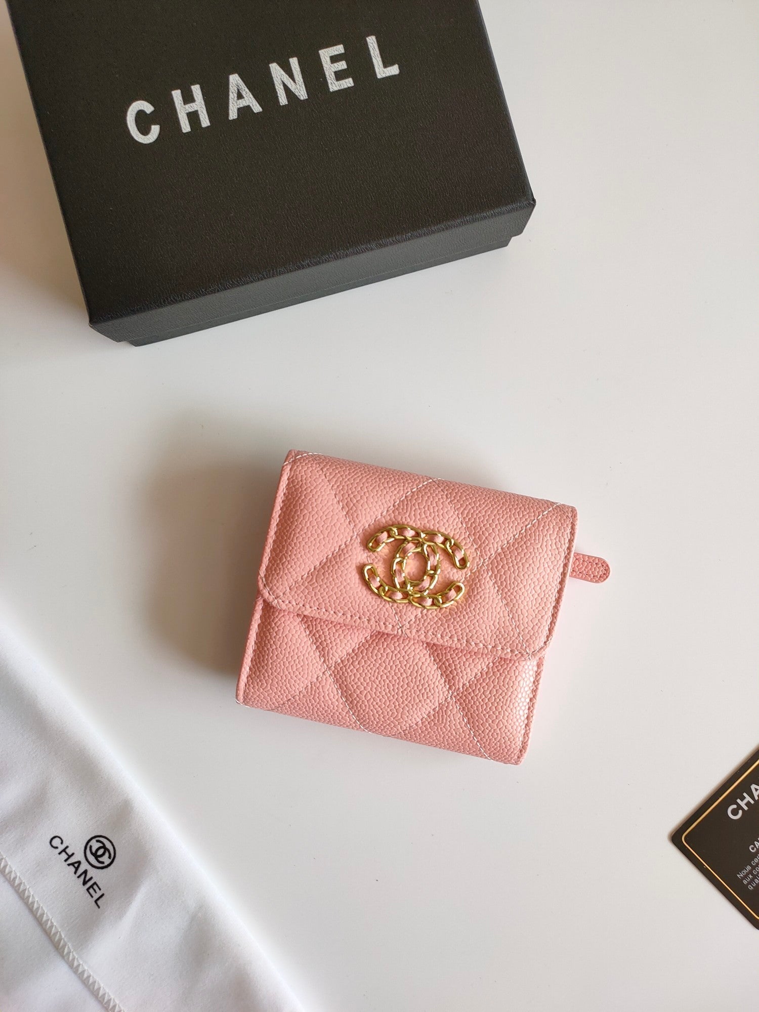 CC SQUARE PURSE 12 PEACH GRAINED CALFSKIN GOLD ICON