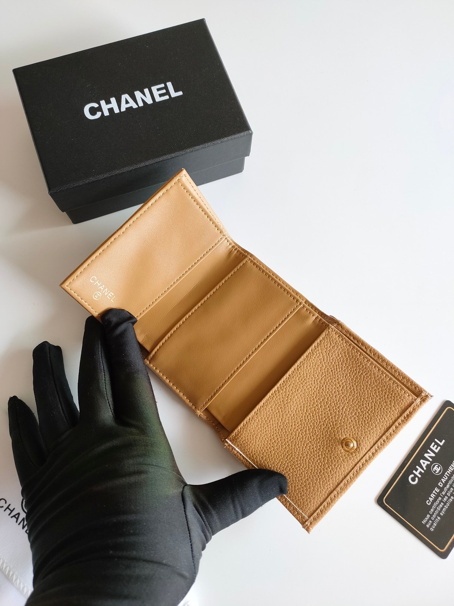CC TRIFOLD PURSE 12 AMBER GRAINED CALFSKIN GOLD ICON