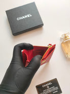 CC ZIPPED CARD HOLDER 11.5 RED GRAINED CALFSKIN GOLD ICON