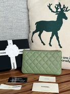 cc zipped wallet 20cm green quilted caviar gold hardware