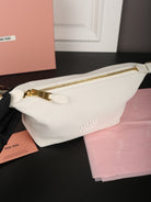 CHAIN SHOULDER BAG 18 IN WHITE FABRIC GOLD HARDWARE