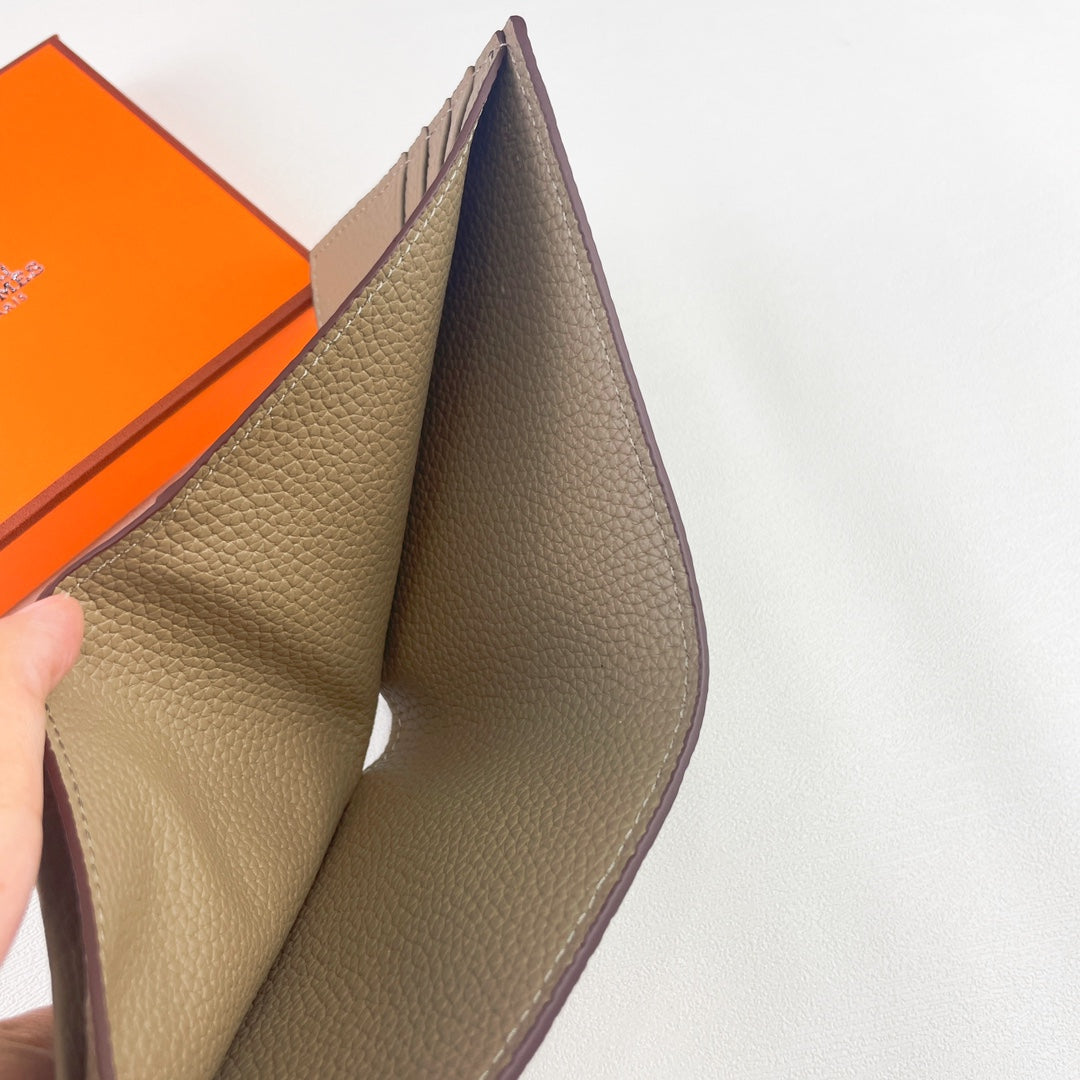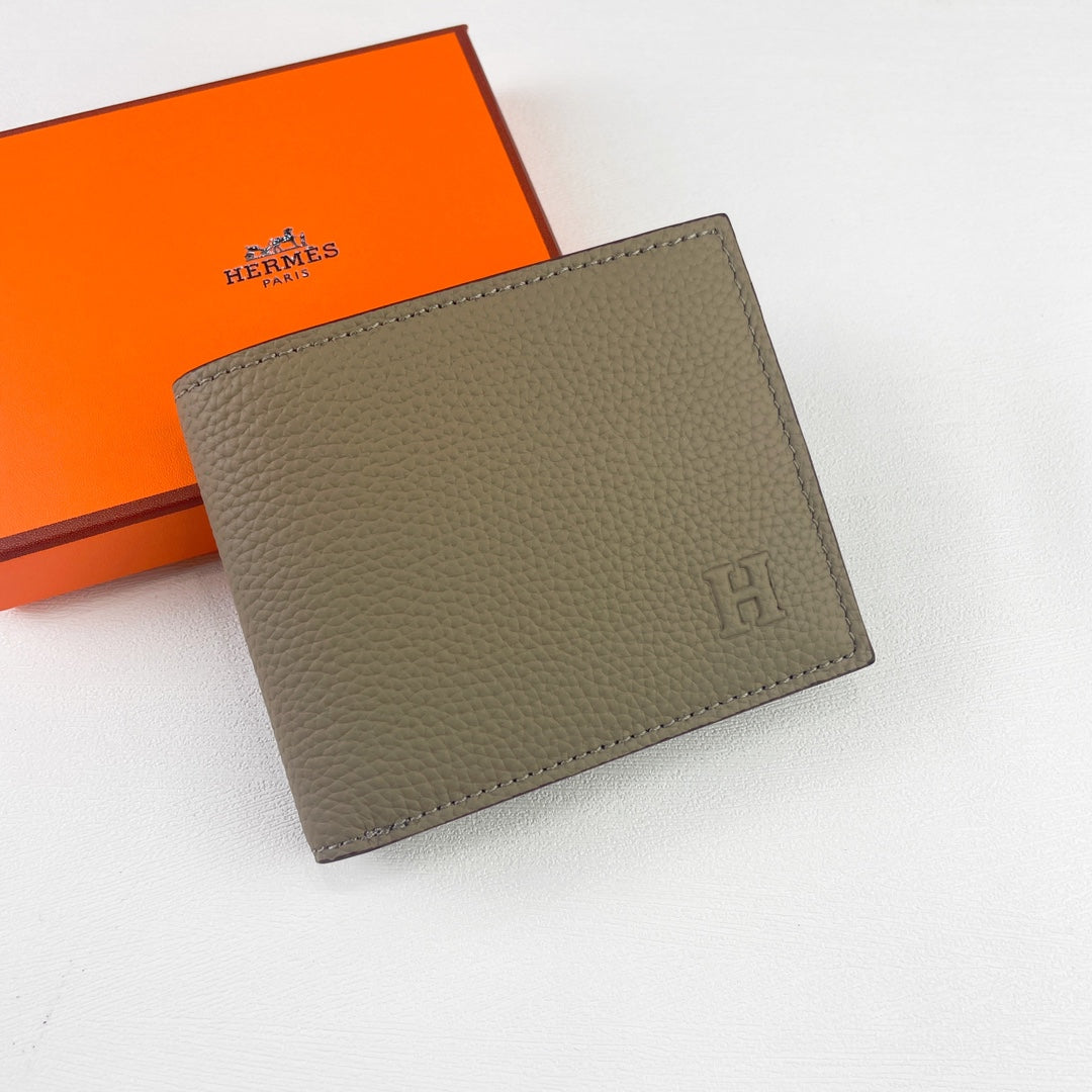 HM SILK’IN MEN’S SHORT WALLET 11.5 KHAKI GRAINED CALFSKIN