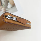 HM SILK'IN HOLED SHORT WALLET 11.5 BROWN GRAINED CALFSKIN