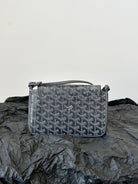 PLUMET POCKET WALLET 20 IN GREY BLACK GOYARDINE CANVAS AND LAMBSKIN TRIM
