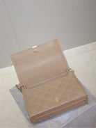 BECKY 25 IN MEDIUM BROWN QUILTED LAMBSKIN GOLD HARDWARE