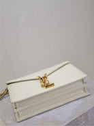 CASSANDRA CHAIN BAG 22 IN WHITE CROCODILE PATTERN CALFSKIN GOLD HARDWARE
