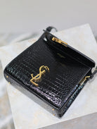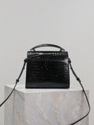 CASSANDRA MINI TOP HANDLE BAG 20 IN BLACK CROCODILE-EMBOSSED GLOSSY CALFSKIN