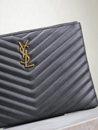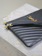 CLUTCH 24 IN BLACK QUILTED CALFSKIN GOLD BUCKLE