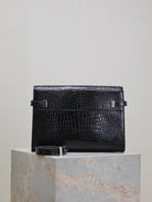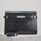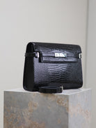 MANHATTAN MEDIUM 29 IN BLACK CROCODILE-EMBOSSED CALFSKIN SILVER BUCKLE