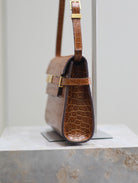 MANHATTAN SMALL 24 IN BROWN CROCODILE PATTERN CALFSKIN GOLD BUCKLE