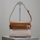 MANHATTAN SMALL 24 IN WHITE CANVAS AND BROWN CALFSKIN GOLD HARDWARE