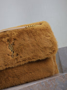 NIKI 47 IN CINNAMON BROWN RABBIT FUR GOLD HARDWARE