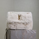 NIKI MEDIUM 28 IN WHITE RABBIT FUR GOLD HARDWARE