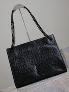 NIKI SHOPPING BAG 33 IN BLACK CROCODILE-EMBOSSED CALFSKIN