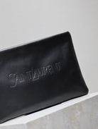 POUCH 30 IN BLACK CALFSKIN WITH EMBOSSED LOGO