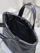 TOTE BAG 50 IN BLACK CALFSKIN WITH EMBOSSED LOGO