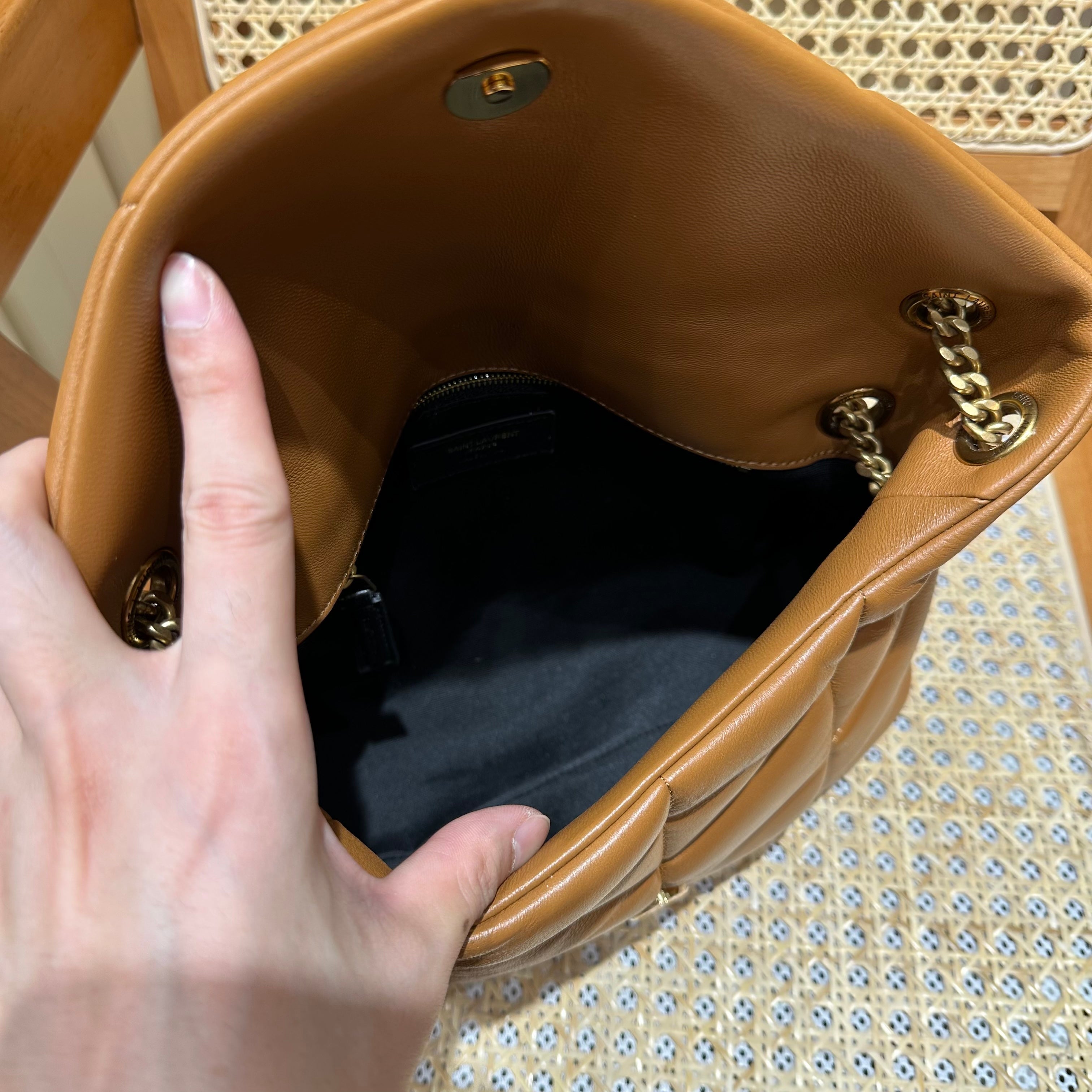 YSL Loulou Puffer Quilted Bag Brown Gold Lambskin 338793