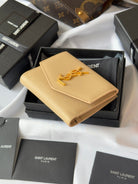 YSL Tri-fold Wallet Beige Gold Cowhide 242756