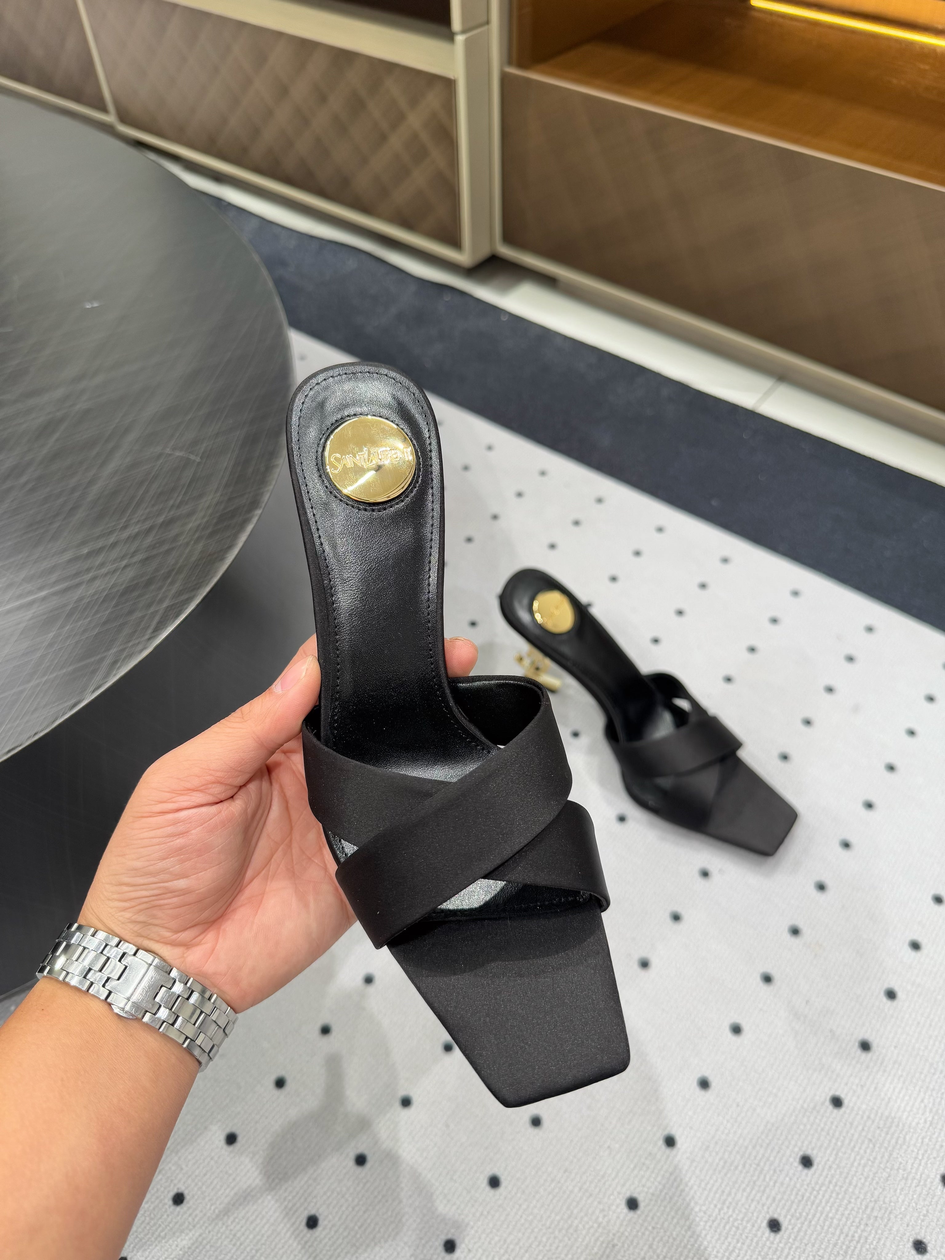 OPYUM HIGH MULES IN BLACK SILK