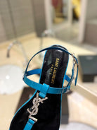 SL CASSANDRA SANDALS CERULEAN POLISHED CALFSKIN