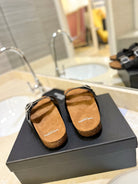 SL Flat Sandal Women Brown Seude Black Calfskin