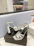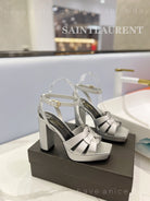 SL TRIBUTE FLATFORM SANDALS SILVER CALFSKIN