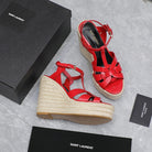 SL TRIBUTE WEDGE SANDALS CRIMSON POLISHED CALFSKIN