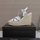 SL TRIBUTE WEDGE SANDALS SILVER CALFSKIN