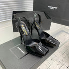 SL FISH MOUTH SANDAL PUMP BLACK POLISHED CALFSKIN