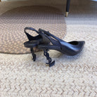 OPYUM BLACK HEEL SLINGBACK PUMPS IN BLACK SMOOTH LAMBSKIN