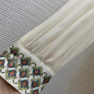 - Color: Beige bright flower embroidery , Beige dark embroidery