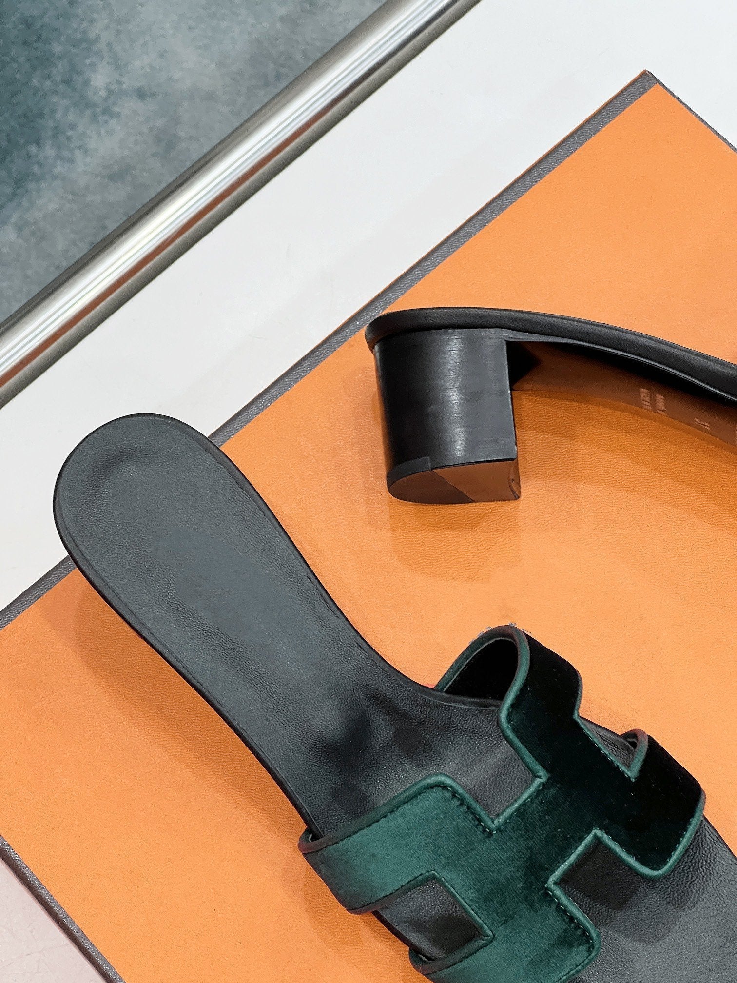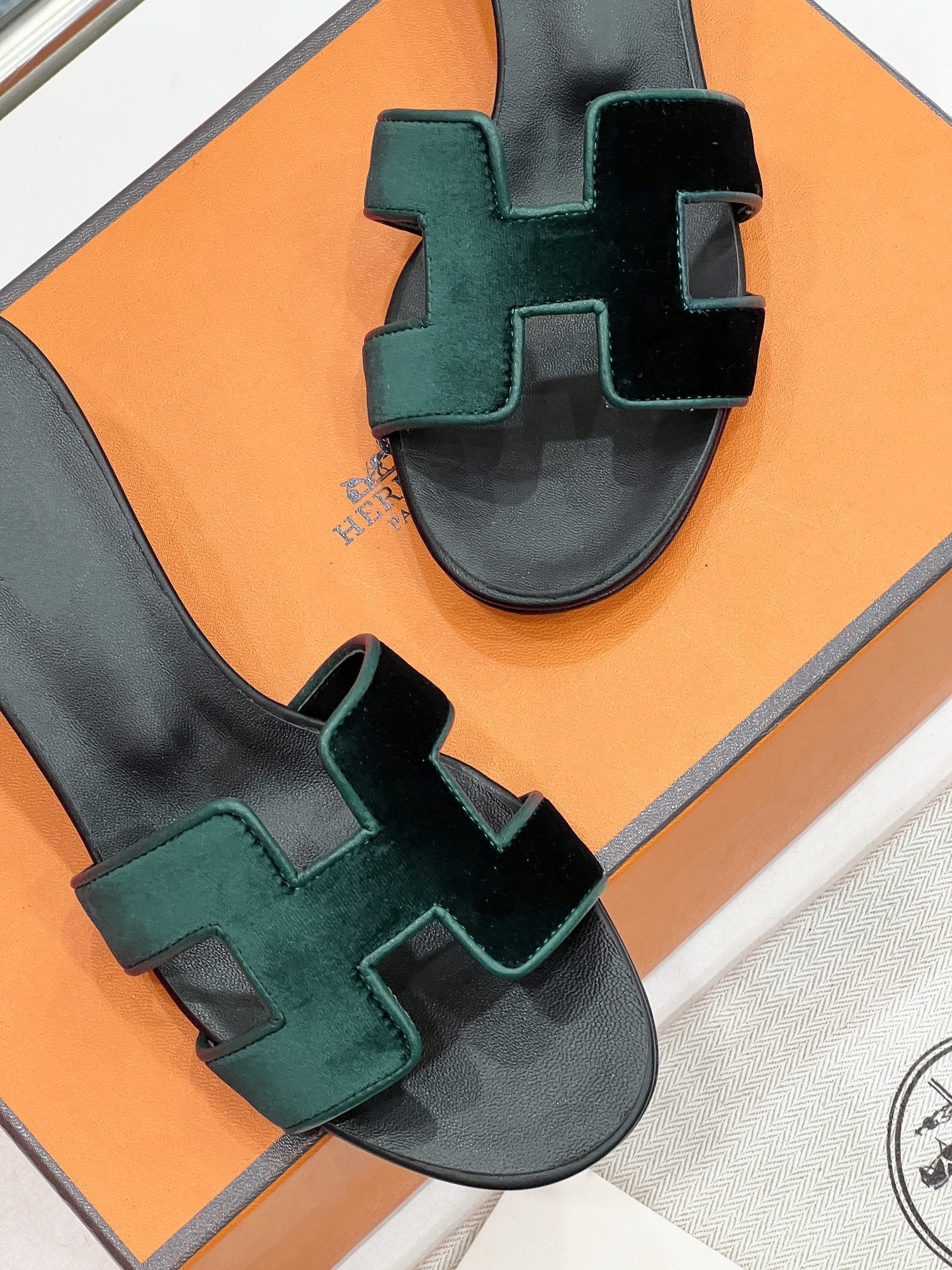 - Material: Sandal in velvet with iconic "H" cut-out.
