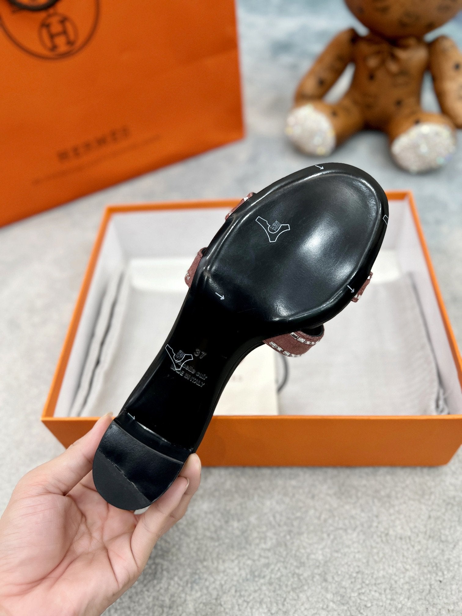 - Material: Sandal in calfskin with iconic "H" cut-out.