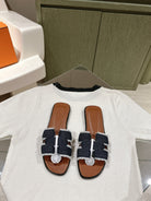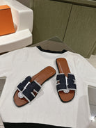 0ran sandal black denim brown calfskin
