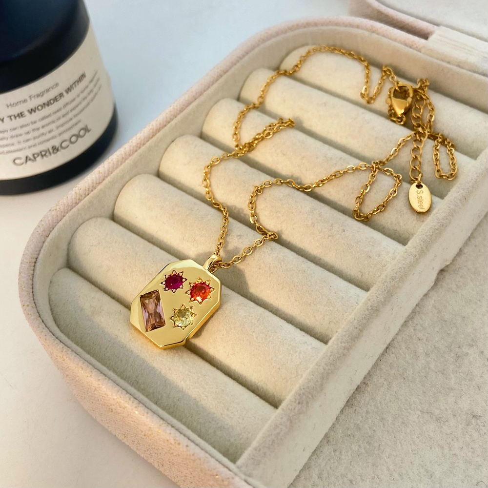 30 MONTAIGNE NECKLACE GOLD-FINISH METAL WHITE CRYSTALS #VIO2010R