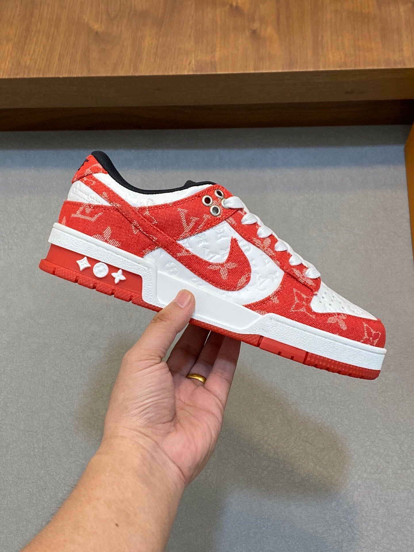 • Material: Original single upper: Napa calfskin with embossed brand totem, brand totem fabric, tongue, heel, and brand logo.